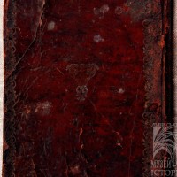 рослинним орнаментом і слідами позолоти. Корінець одне ціле з обкладинкою. В